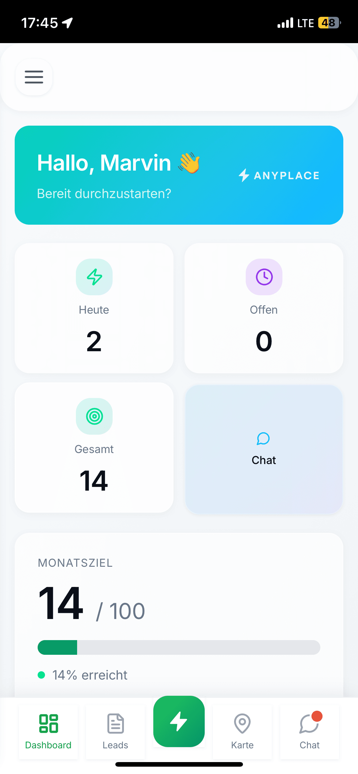 Teile deinen Standort, deine Leads & deinen Fortschritt – live.